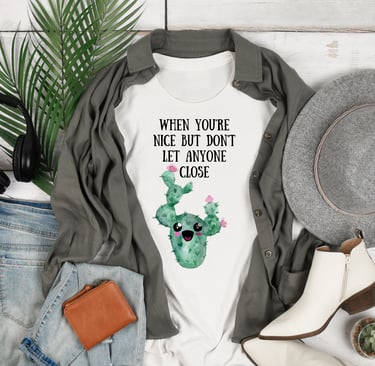 Soft heart, sharp boundaries—that’s the vibe. The Prickly Sweet Collection is for the kind souls with cactus energy: friendly, warm, and not afraid to say “no.” With smiling cacti and a wink of humor, these designs remind us that boundaries are beautiful and self-care can bloom with thorns. Perfect for anyone who’s nice… but not naïve.